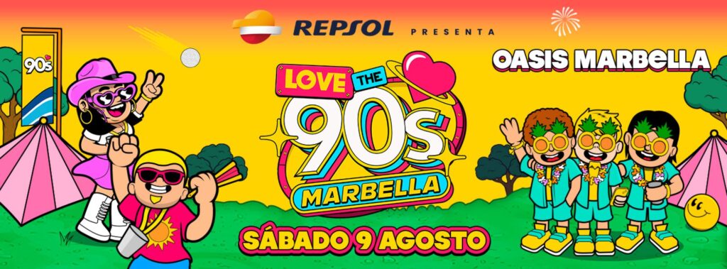 Para el sábado vuelven los 90. En su tercera edición en Marbella Love the 90s trae artistas súper conocidos para aquellos que vivimos la época como Safri Dúo, Hathaway , Sonique, Snap, Rebeca, Chimo Bayo, Paco Pil, Tina Cousins, Loco Mia y los Jumper Brothers como siempre pinchando la mejor música para animar el evento.